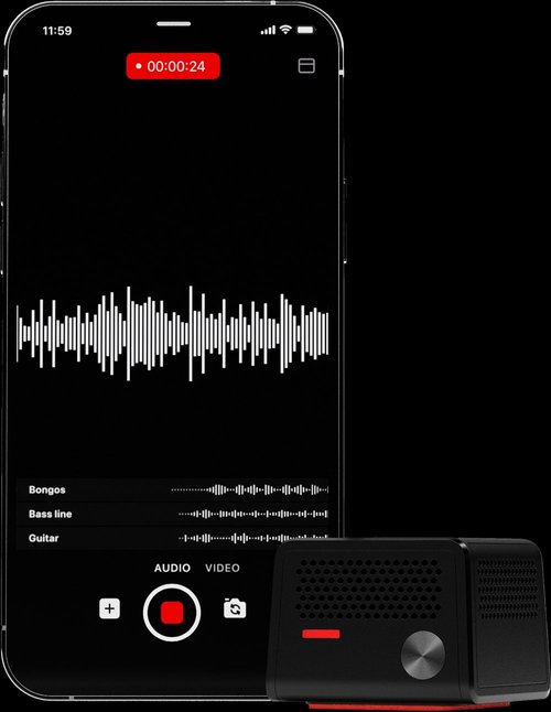 Mid side stereo recording. High-quality 24-bit/48kHz wav files. Connect up to four mics at once. Fits in your pocket.